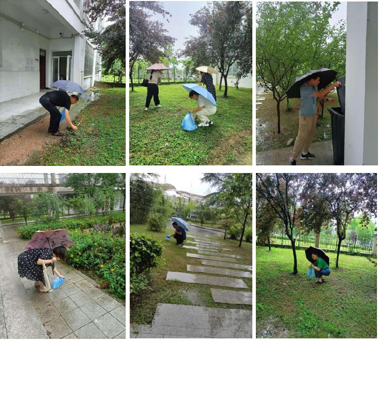 基础部党员志愿者到老实验楼花园,大家分工合作,集中清理杂草杂物、捡拾垃圾,开展除杂草、捡垃圾义务劳动。党员志愿者充分发扬不怕脏、不怕累的精神,有的徒手拔草,有的捡拾各种垃圾杂物,虽然下着大雨,但现场呈现出一幅热火朝天的劳动场景。通过大家的辛勤劳动,花坛、草坪上的杂草、垃圾和枯枝落叶全部被清除干净,整个花园焕然一新。